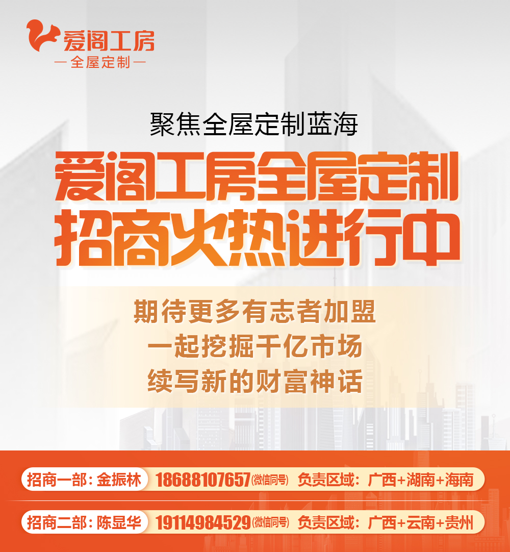全屋定制加盟首选品牌球盟会体育推荐战略伙伴-爱阁工房球盟会体育战略合作客户商情----广西爱阁工房招商;面对定制家居广阔的蓝海市场,在传统家居
